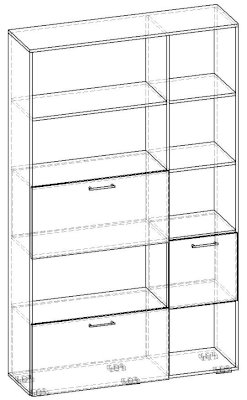 Применение задней стенки из ЛДСП (в ячейках с фасадами) позволяет использовать данный стеллаж для зонирования пространства (чтобы предотвратить опрокидывание, необходимо обеспечить крепление стеллажа к стене).