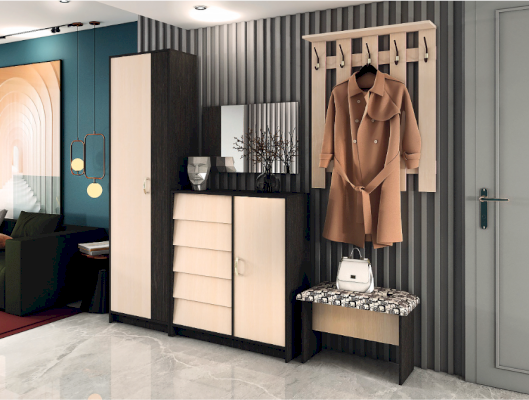 Интро - это целая серия мебели, с помощью которой вы можете обустроить прихожую. В серии представлены обувницы разных размеров с откидными створками, шкаф, зеркало, вешалки.