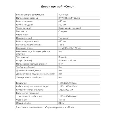 Спальное место: 100х193 см