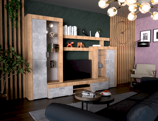 Модульная гостиная Оризона New Дуб крафт/Ателье светлое (PDM)