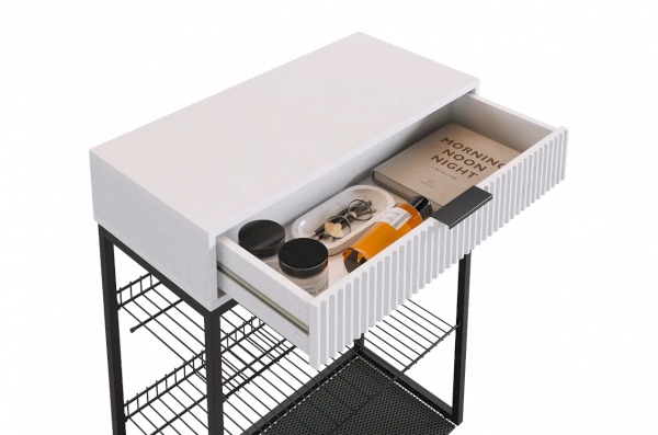 Обувница Вельвет прекрасно сочетает в себе стиль и функциональность. Её дизайн в стиле лофт идеально подходит для современных интерьеров. Выдвижной ящик с шариковыми направляющими обеспечивает бесшумное и плавное открывание, предоставляя удобный доступ к вашим аксессуарам и мелочам. Регулируемые опоры и специальный коврик обеспечивают дополнительный комфорт и защиту.