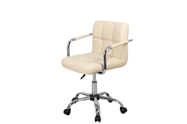 Полубарный стул-кресло АЛЛЕГРО WX-940 с подлокотниками, с применением крестовины на пяти колесах, газлифта и поворотно-подъемного механизма качания. Мягкие формы сидения, спинка оптимальной высоты и хромированные подлокотники с удобными чехлами обеспечат посетителю комфорт. Сиденье и спинка обтянуты искусственной кожей. Чехлы подлокотников изготовлены в цвет сиденья. Нижняя часть стула (газлифт, крестовина и колеса) выполнены из прочных материалов.