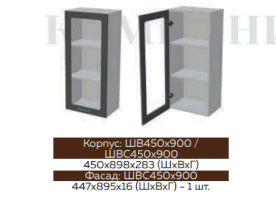 ШВС1Д600/900 Шкаф верхний со стеклом
