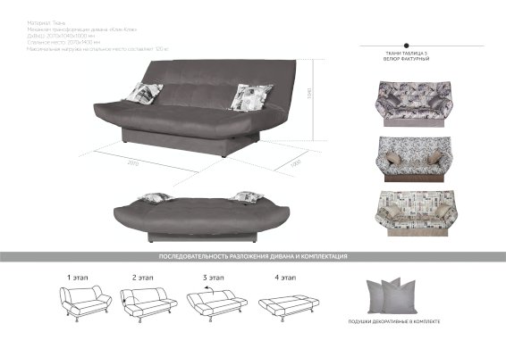 Диван ДП-3 Клик-кляк (Марибель) – товар доступен к покупке в интернет-магазине magadanskiy-dommebeli.ru. Цена – 45 054 руб. без учета доставки. Стоимость дополнительных услуг и сроки получения мебели уточняйте у менеджера. Возможен безналичный расчет, оплата по карте на сайте.